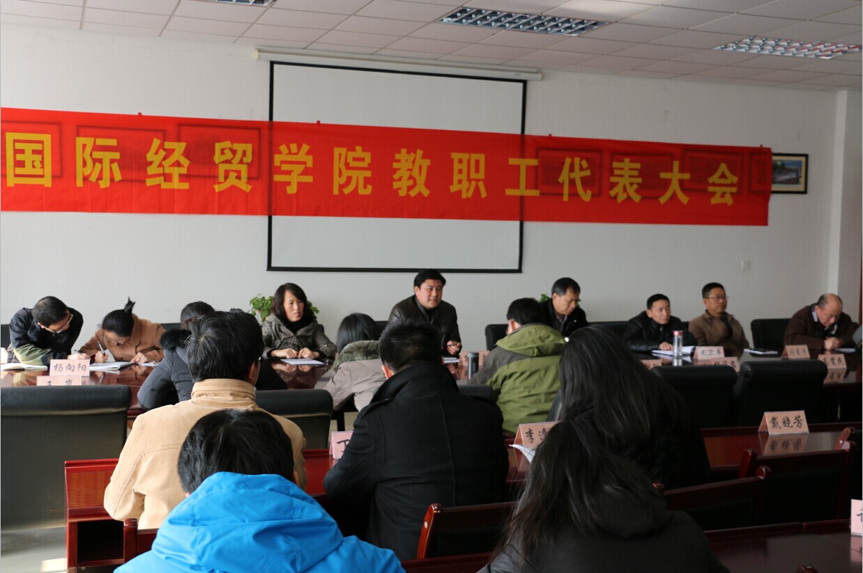 1月7日下午,国产自拍 2014年度教职工代表大会在仙林校区经济学科楼308召开。国经经贸学院党政领导以及全体教师参加大会。会议由国产自拍 工会主席闫小平老师主持。 会上,院长宣烨作《国产自拍 国产自拍 2014年度工作报告》,他从教学、科研、研究生教育、学生工作等各方面,以大量详实的数据,向全体教师汇报2014年度学院各项工作情况以及财务收支状况,对2014年基本情况进行了回顾总结,并提出了2015年工作的基本思路...