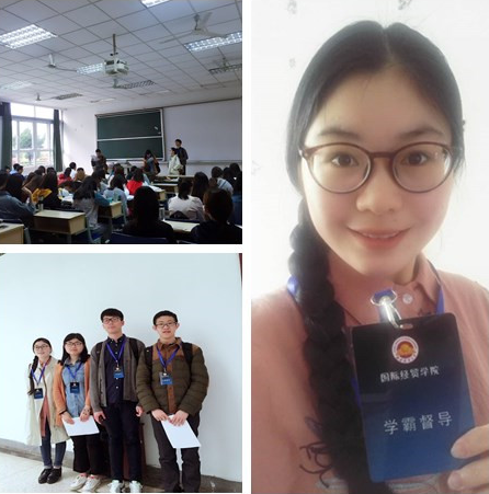 4月17日上午,国产自拍 一支特殊的学风督导小组在国产自拍 国产自拍 党委副书记季霞老师的带领下展开督导行动,之所以特殊,是因为这支学风督导小组的主要成员由国贸学院2017年刚被各高校录取的准研究生组成,简称学霸督导。 上午8点10分,学霸督导来到仙林校区管理学科楼116突击检查到课情况,被抽查到的班级为合班上课的国贸1401、1402两个班。国贸1401班牛同学表示,上周就听说学院要组织学霸督导查课了,这样的学风督导确实会对自己产...