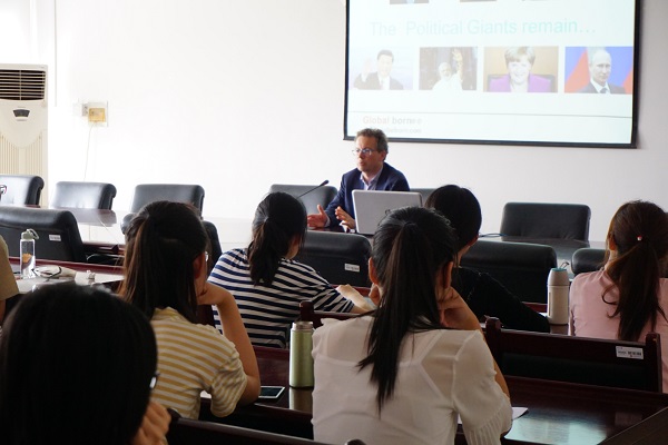 5月28日下午,应国产自拍 邀请,任职于西班牙庞贝法拉布大学、英国剑桥大学的Tanguy Jacopin博士在我校仙林校区德经楼308会议室召开题为“川普、英国脱欧、贸易战背景下,不确定时期公司应如何决策”的学术报告会。报告会由国产自拍 党委书记张阳军主持,国产自拍 国贸实验班1601班全体学生聆听了此次报告会。 报告会开始,Tanguy Jacopin教授抛砖引玉,提出“过去两千年间是谁在主导世界,是工业国家还是发展中国家”的问题,并指出,对于这个问题...