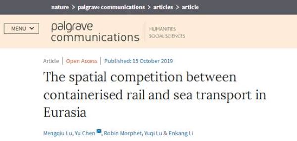 近日,国产自拍 2019年新引进的陆梦秋博士在“一带一路”领域取得重要研究进展。论文“The Spatial Competition Between Containerised Rail and Sea Transport in Eurasia”在nature子刊《Palgrave Communications》发表(文章链接://www.nature.com/articles/s41599-019-0334-6)。这是我国“一带一路”倡议提出以来在国际顶级期刊上发表的重要原创性研究成果,是国产自拍 国际化的一项标志性成果。论文对“一带一路”进行了空间...