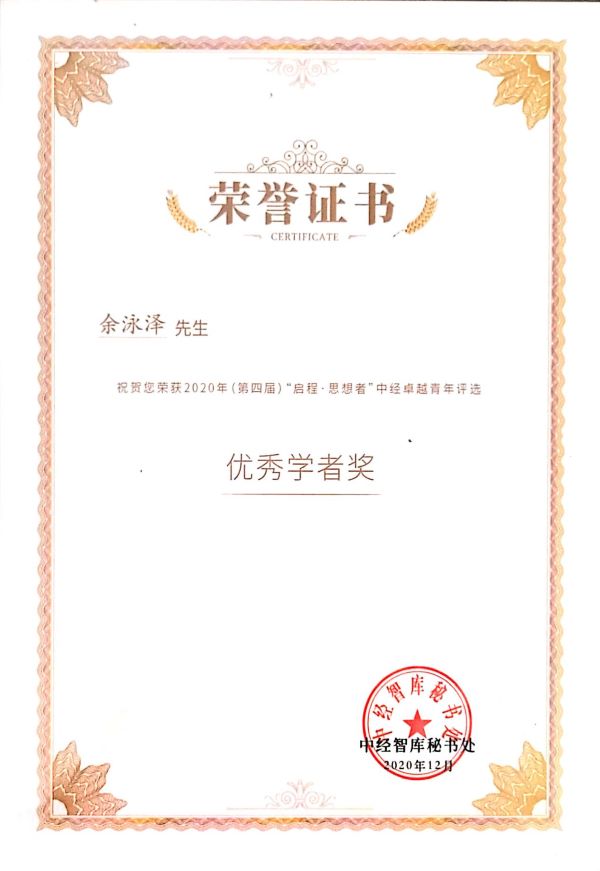 2021-01-06国产自拍 余泳泽教授入选2020年度中经十大卓越青年