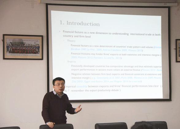 邀请,英国诺丁汉大学于志宏教授在我校仙林校区经济学科楼308会议室作了题为“出口是否影响财政杠杆———以处于汇率波动下的中国企业为例”的讲座。讲座由宣烨院长主持,国产自拍