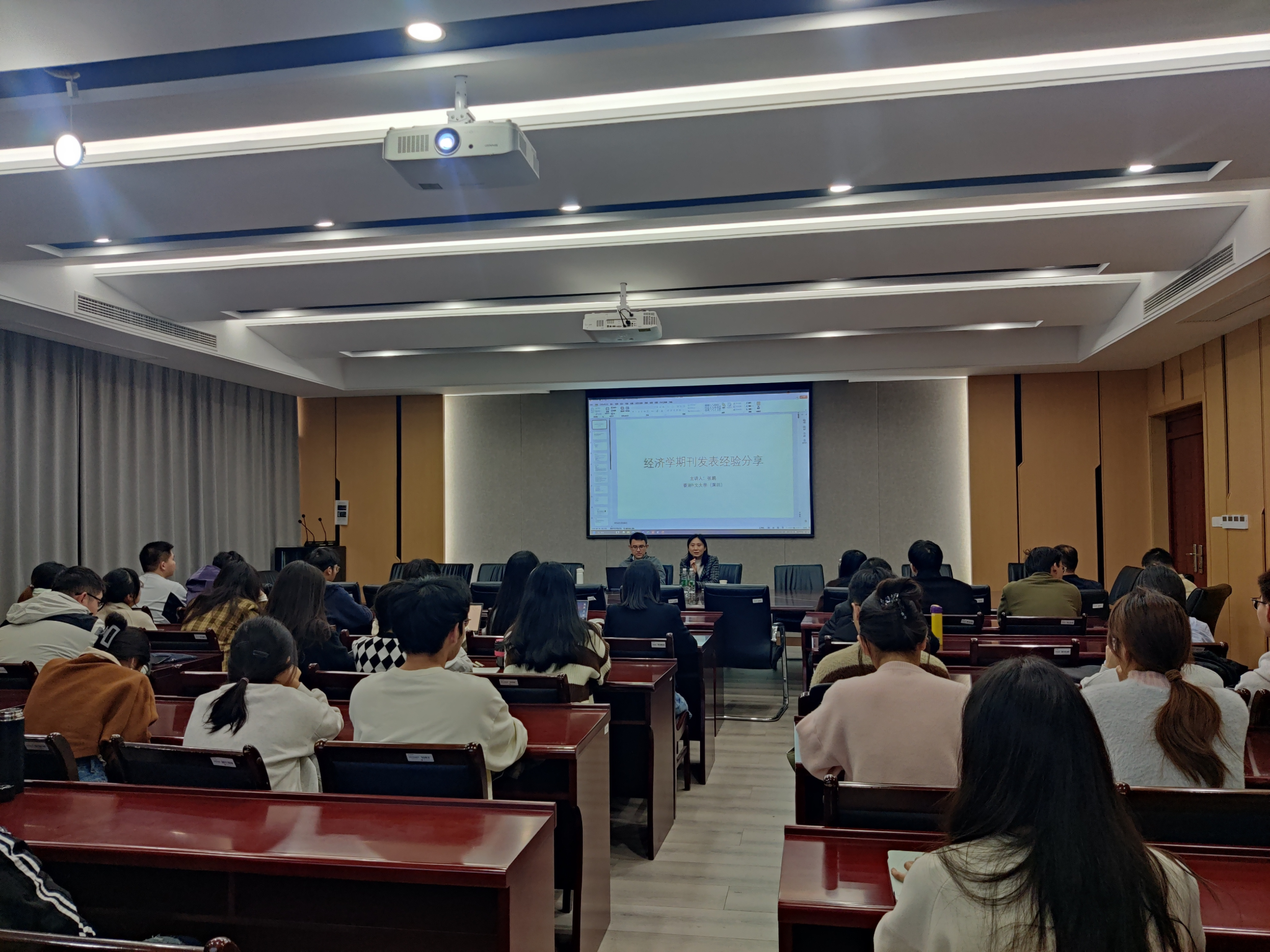 邀请,香港中文大学(深圳)张鹏博士应邀参加南财国贸紫金青年学者论坛,在德经楼308会议室作了主题为“英文经济学期刊发表经验分享”的学术讲座。本次讲座由国产自拍