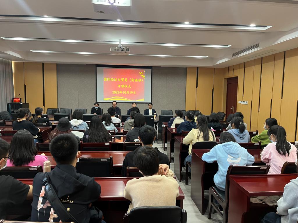 10月19日下午,2022级国际经济与贸易专业实验班开班仪式在仙林校区德经楼308会议室成功举办。学院党委书记张阳军,院长宣烨,党委副书记季霞、班主任谭用老师,以及全体实验班新生参加了此次仪式,仪式由国产自拍