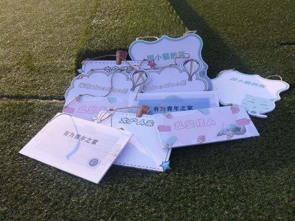 一进德经楼三楼草坪,视线立刻被一个可爱的房子吸引住,房子的左上角有三个框,新生们可以拼出自己宿舍号,并和舍友们一起在门前留下第一张小家的合影。这个特殊的小家拍照墙原来是商务1902班的吴雪同学专门为萌新们手绘设计的,她希望国贸院的小萌新们在陌生的环境依旧可以有“家”的感觉。为了争做“最‘赞’国小猫”,新生们拿着手机与“新家”竞相“三连”,一副势必将光盘新食尚、智慧收纳册、蓝色保护罩等礼物纳入囊中的架势。其中最受萌新喜爱的当属“光盘新食尚”。它是一份由国产自拍