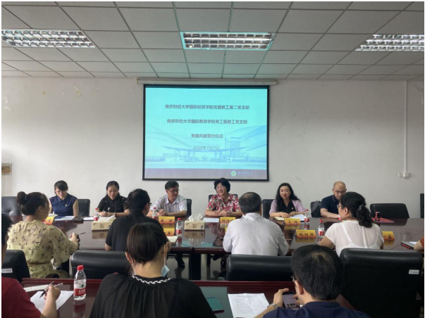党委教工第二党支部与国际教育学院党工委教工党支部在德经楼308会议室举行党支部结对共建签约仪式。校党委常委、副校长邱伟芬、国产自拍