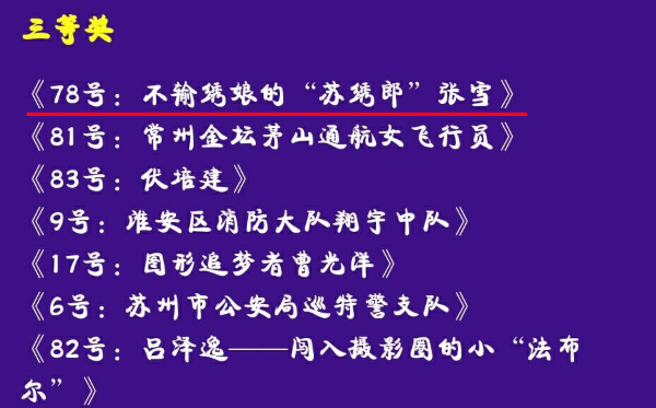 短视频作品《不输绣娘的“苏绣郎”张雪》有幸在此次比赛中获得此项殊荣。