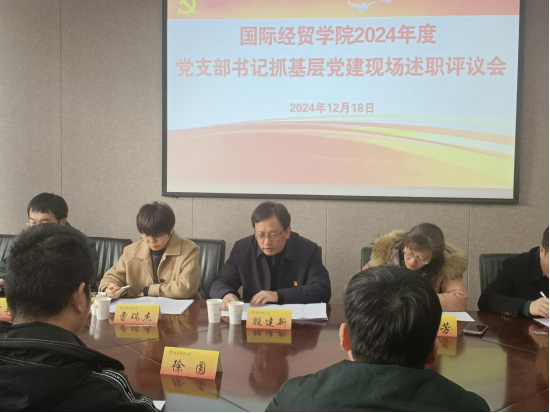 为深入学习贯彻习近平新时代中国特色社会主义思想和党的二十大、二十届三中全会精神,夯实基层党建工作责任,充分发挥学院基层党组织战斗堡垒作用和党组织书记头雁作用。2024年12月18日上午,国产自拍 在仙林校区德经楼308会议室召开党支部抓基层党建现场述职评议考核会。学院全体党委委员、党支部书记、普通党员、党外人士、群众代表等参加会议。应用数学学院党委书记殷建新、图书馆党委组织员曹瑞杰列席参加。会议由院党委书记周亚芳同志主持。