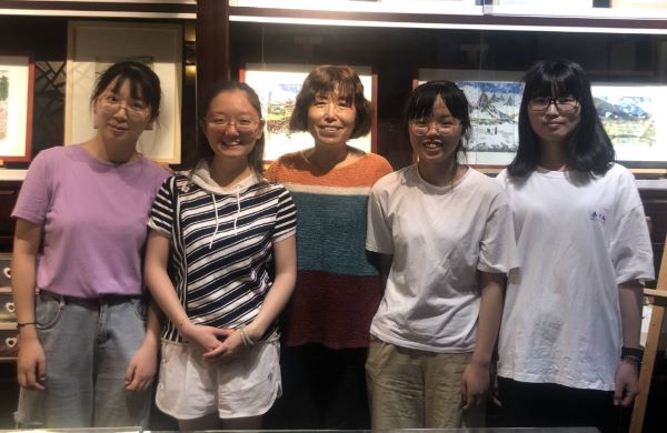 (与布贴画手艺人祈竞合影 通讯员 刘梦萍摄)