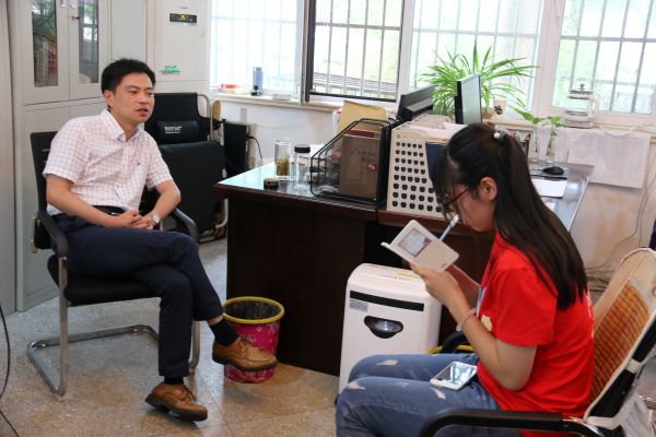 (小队成员对李处长进行采访 刘新媛 摄)