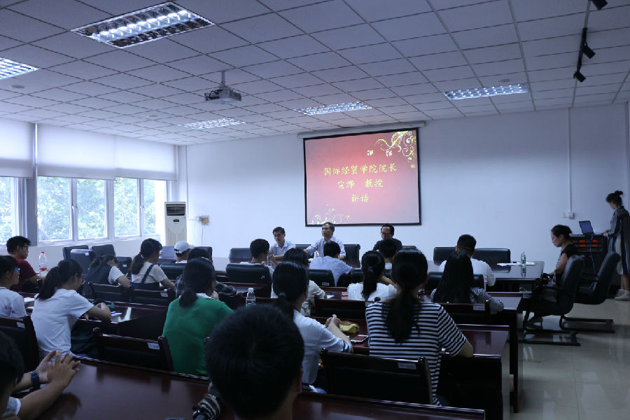 黄能教授给予了实验班新生一些学习启示。他说,人生是动态发展的,如果稍有懈怠就很容易被别人超越。不同的人生阶段有不同的台阶,而实验班正是一个很好的出发点,希望同学们珍惜学习机会,打造优秀的自己。接着,黄能教授介绍了国贸实验班的核心课程全英授课的培养模式以及我校的海外留学项目,他表示,这种培养模式在营造良好语言环境的同时,还能培养学生的批评式分析思维和创新思维,培养创新人才。