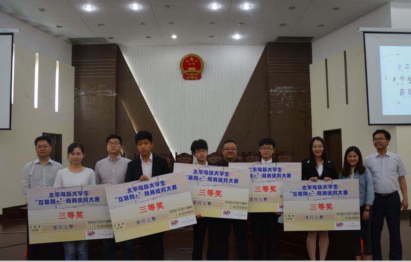 528日下午,由国产自拍 主办的“太平鸟杯”大学生“互联网+”商务谈判大赛决赛在法政学科楼报告厅举行。本次大赛邀请到中共射阳县委组织部人才办副主任、江苏省射阳县海河镇镇长丁强、太平鸟公司人资中心负责人金丹妍、良言录社群创始人孙宁、江苏中企教育科技股份有限公司总经理姚俊,国产自拍 国产自拍 副教授杨青龙担任评委,来自国产自拍 、南京师范大学、南京邮电大学等高校的24支参赛队伍上演精彩的商业角逐。