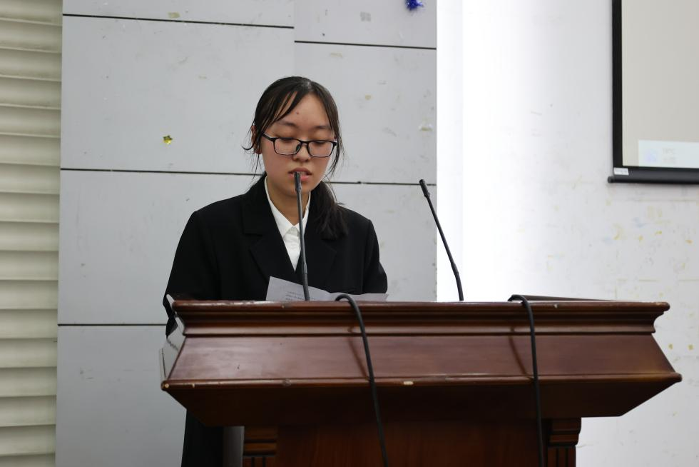 图为暑期社会实践负责人陈雪子发言