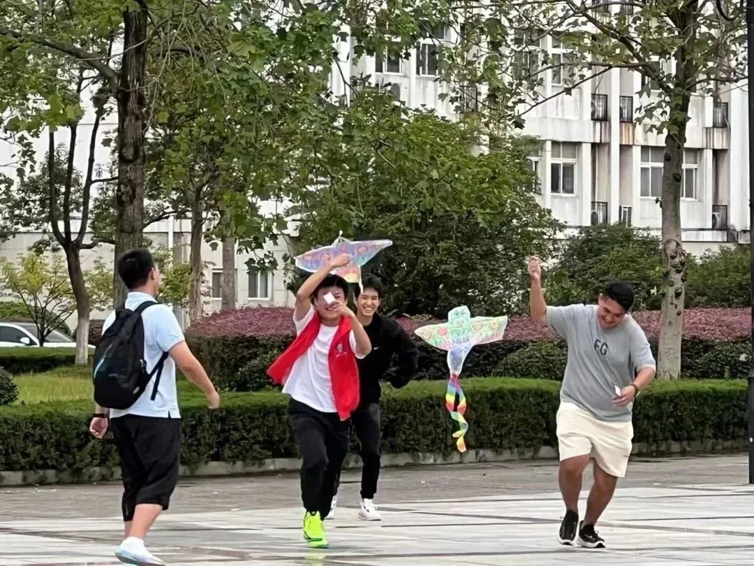于中苑食堂门口举办了“凉风迎秋分,莫负好时光”风筝制作活动。