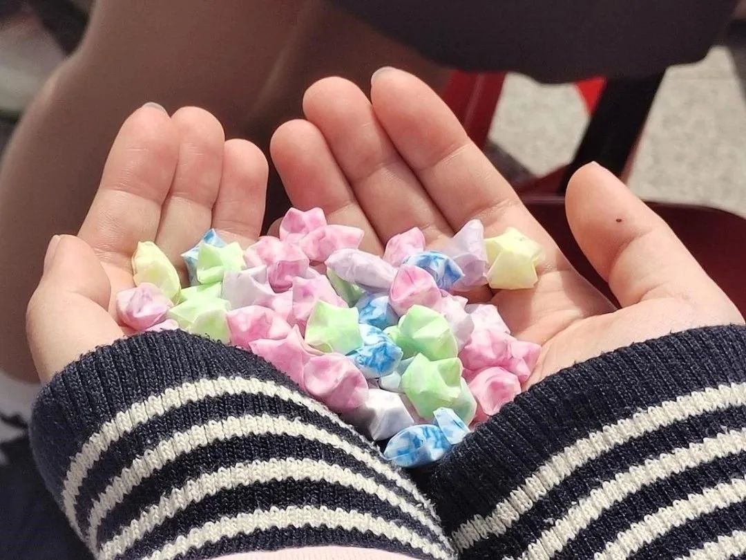 点点星星,汇聚成光。本次活动通过一个浪漫的方式——动手折小星星,来寄托对自闭症儿童的祝福与关爱。在志愿者的介绍下,同学们纷纷加入折小星星的行列,每一位同学都很爱护手中的小星星,将它们认真折成美好的形状。星星积少成多,国贸2202班的邢莹同学将它们汇聚在一起,放在手心捧起并说道:“希望这些星星能够将爱传递给‘星星的孩子’,呵护他们的心灵,带给他们生活的力量。”