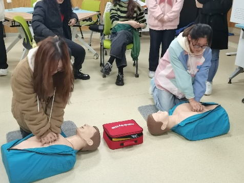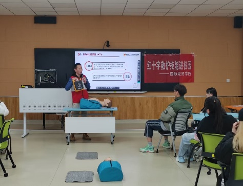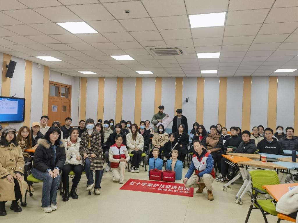 携手南京市红十字会开展应急救护技能培训,此次活动在博文楼103举行,两位红十字会的老师和国产自拍