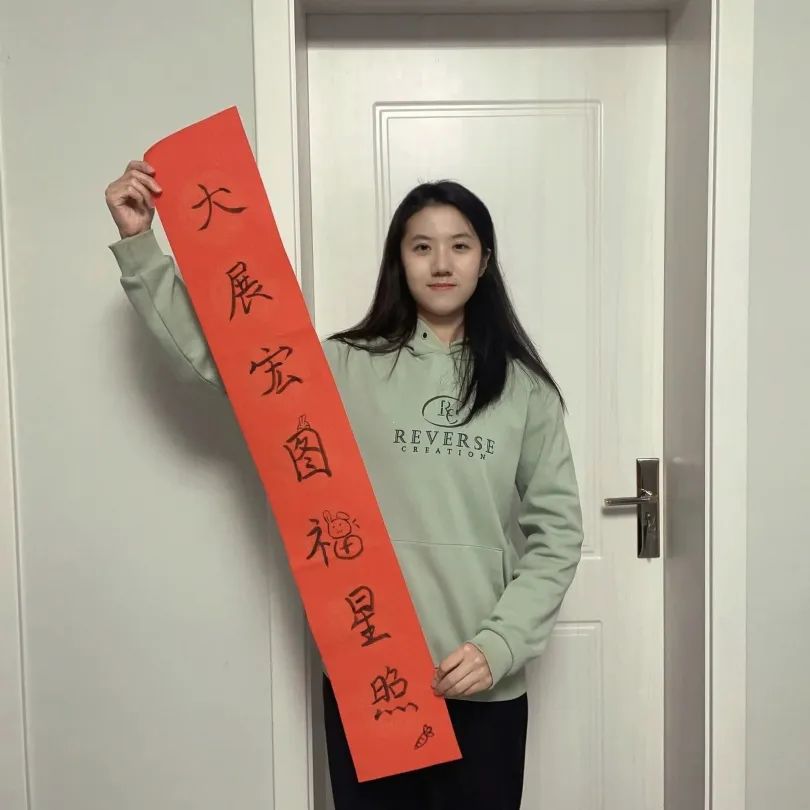 除此之外,同学们还书写了对联来增添节日气氛。在写对联的过程中,同学们加入了诸多创意元素,例如兔子图案、铜钱图案等,使得对联更加可爱俏皮。风光胜旧,岁序更新,新一年的好气象必定会在同学们挥洒下的墨水中绽开。