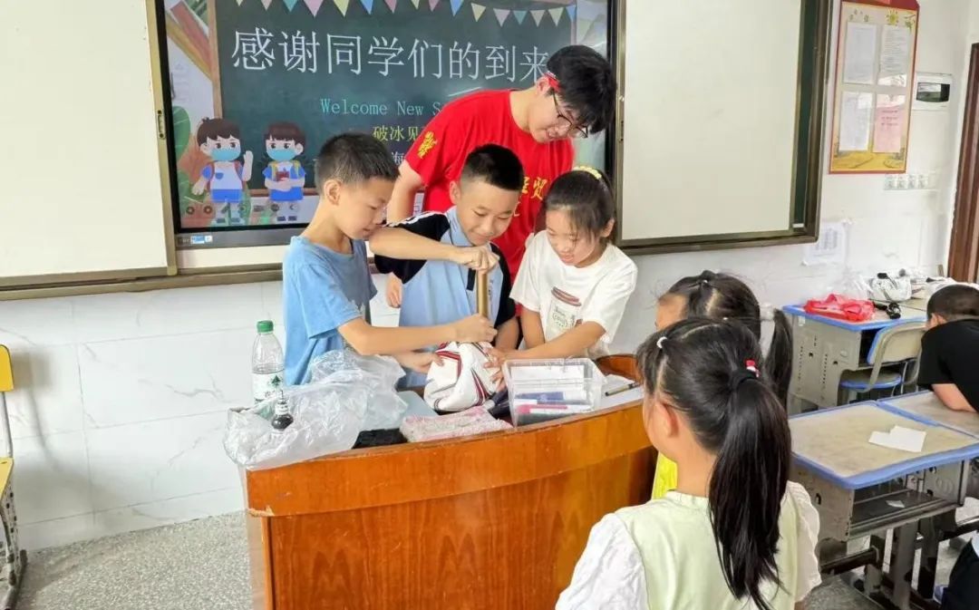 “漓漓圆上草”支教团队17名志愿者抵达广西壮族自治区桂林市灵川县海洋乡中心小学,正式开启为期两周的暑期支教活动。鉴于支教行动以足球为特色载体,支教志愿者便精心策划了开学首日的聚焦“团队融合、破冰互动、安全教育、歌曲互动”四大环节的活动,为当地30名乡村孩子带来别样的暑期体验,以教育为桥搭建起连接大山与外界的成长纽带。