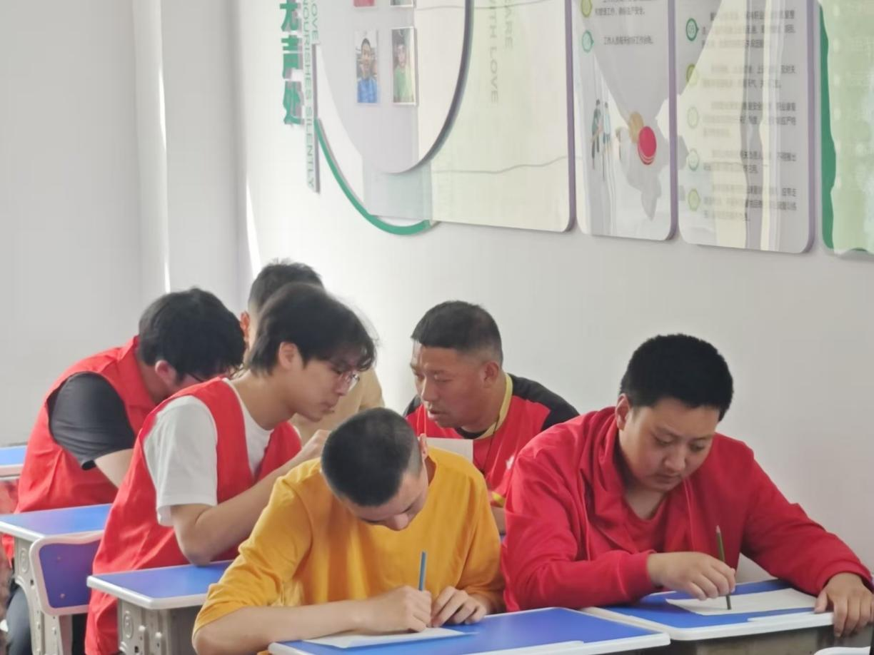 当日阳光明媚,团队成员怀揣热忱与期待准时抵达博爱之家,迅速与工作人员完成对接。活动伊始,志愿者们迅速进入角色,有条不紊地为学员佩戴精心准备的编号牌,仔细分发各类物资,不放过任何一个细节,确保活动顺利开展。随后,他们温柔引导学员走进教室,积极协助工作人员开启日常授课。
