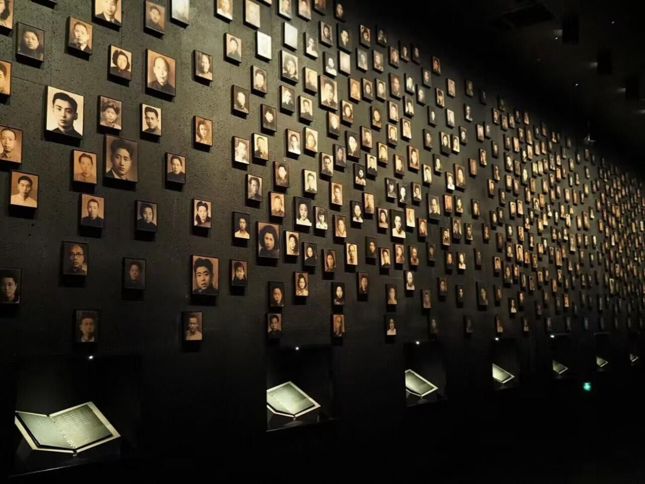 随后,实践团成员跟随讲解员进入展厅。从 “战前南京” 的繁荣景象,到日军侵华的铁蹄践踏,再到南京大屠杀的惨烈现场,大量历史照片、泛黄的书信、锈迹斑斑的凶器、遇难者遗骸等文物史料,结合动态影像与场景复原,构建出立体的历史图景。在 “万人坑” 遗址前,成员们驻足良久,玻璃展柜下层层叠叠的遗骨沉默地控诉着暴行;在 “幸存者墙” 前,一张张黑白照片记录着幸存者的沧桑面容,旁边标注的生卒年份中,许多名字已被方框圈起,提醒着这段历史见证者正逐渐离去。讲解员的声音低沉而清晰,每一个数据、每一个故事都让成员们神情凝重,深刻体会到 “落后就要挨打” 的惨痛教训。