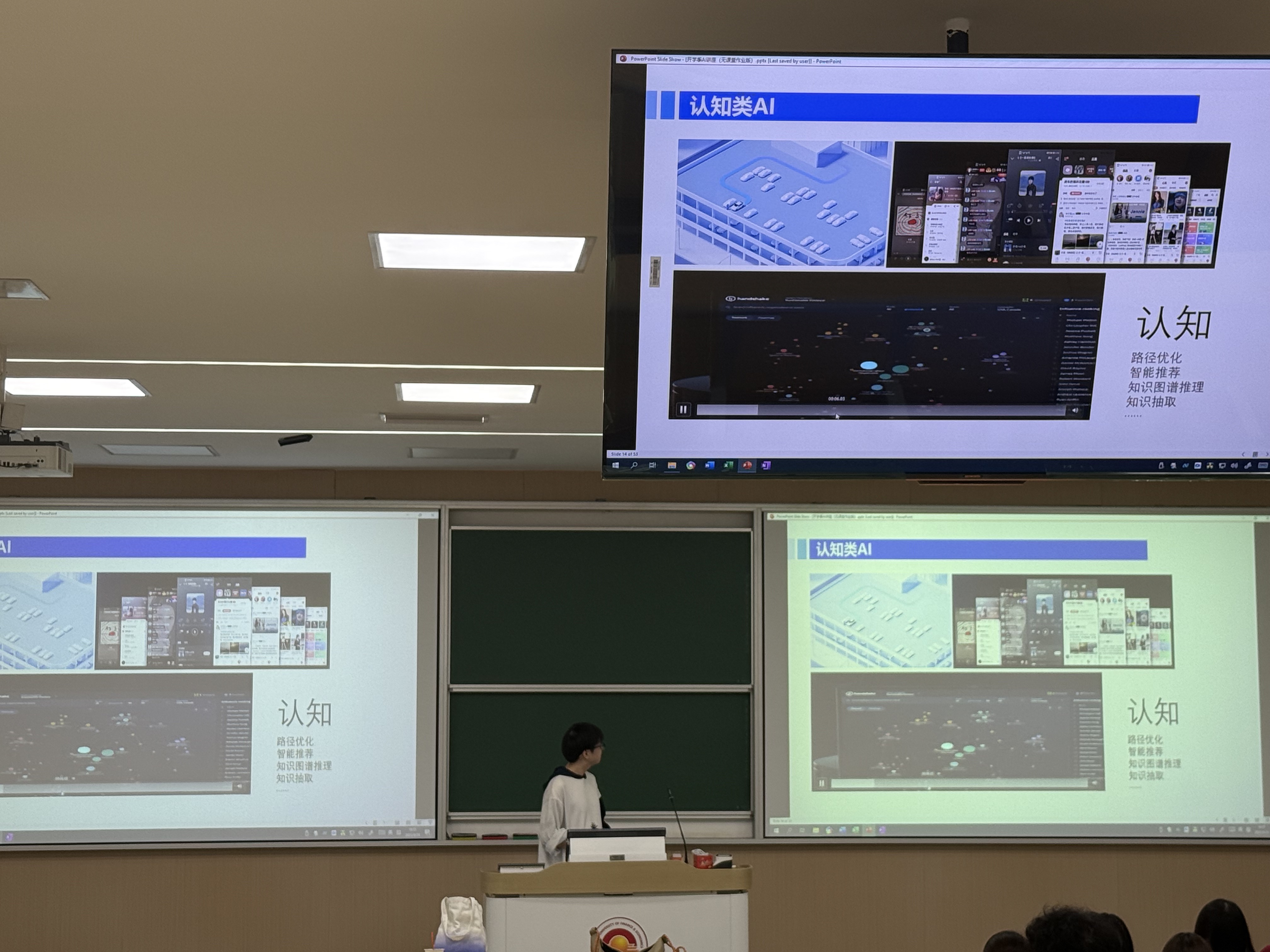 掌握AI技术的基础知识,是迈向智能时代的第一步。褚新磊同学立足当下社会各行业面临数字化、智能化转型时代背景,抛出“AI或将替代大部分工作,人的价值该如何体现”等思考,指出新时代学习与掌握AI技术的重要性。他首先梳理了四大AI能力获取渠道,同时通过现场演示提示词(prompt)使用技巧、AI大模型训练方法及知识图谱搭建流程,让同学们对AI技术的认知从抽象走向具体,理解更趋深入。为有效拉近同学们与前沿AI技术的距离,他还引入百度AI、文小言等贴近日常的AI工具案例,激发了大家的探索兴趣。