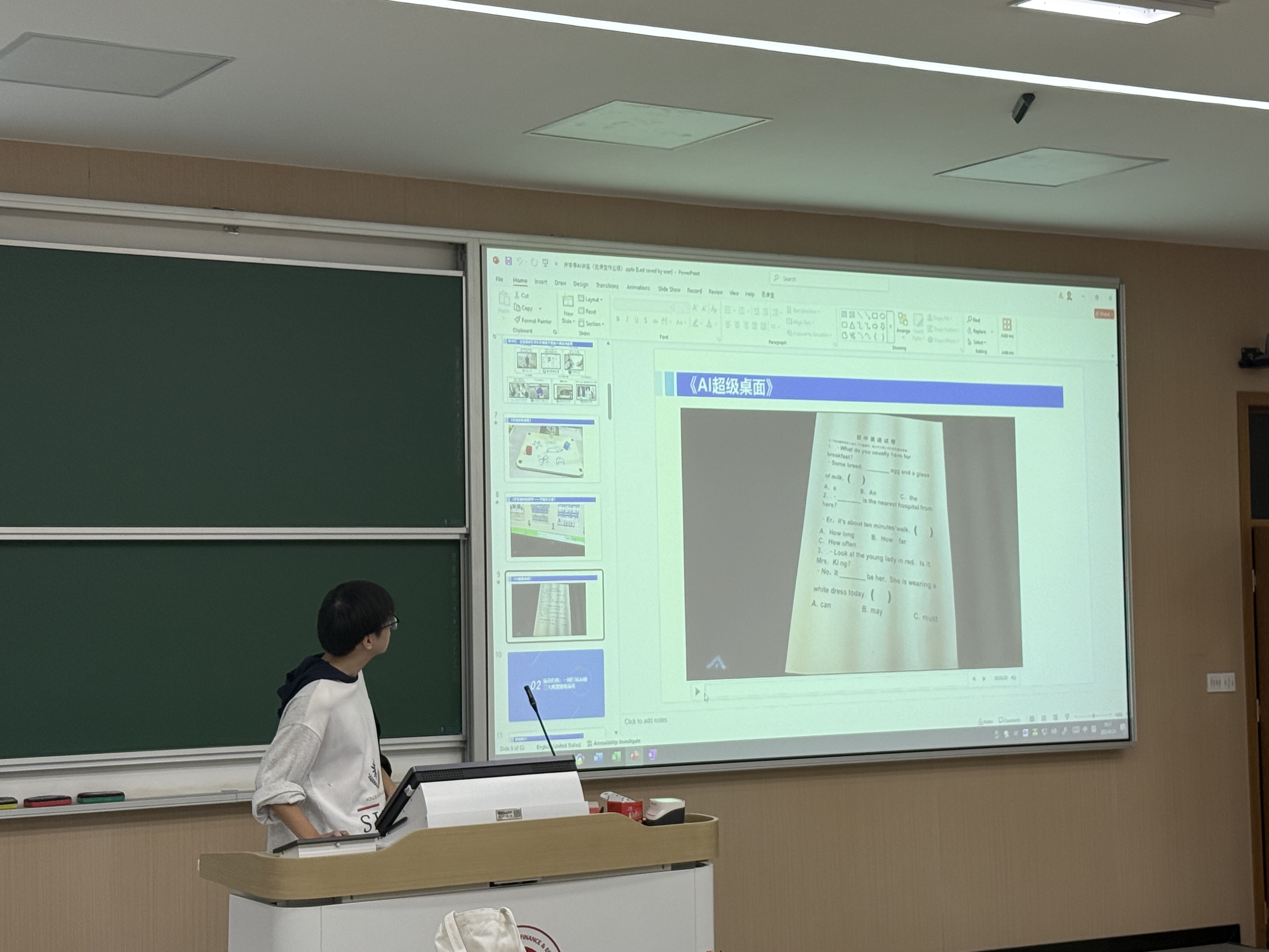 AI的价值,在于它如何真正融入并提升我们的日常生活与工作效率。褚新磊同学聚焦AI应用场景展开介绍,用具体案例生动阐释了AI如何深度融入并改变人们的生活。比如,AI可辅助生成策划书、优化简历,大幅提升文书类工作效率,能创造数字人提供口语陪练服务,甚至通过情感交互传递情绪价值;人们还能借助AI解答困惑,轻松化解人际交往难题、读懂行业黑话等。此外,他提到人工智能的图像创作、个性化定制等功能不仅能够显著提升个人与社会的运转效率,更能持续为社会发展注入新动能。