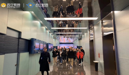 的同学们来到苏宁总部,展开了为期半天的“青春实践路,苏宁名企行”校企互动活动,此次活动共有四十多名同学参与。