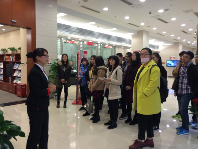 20151121日,国产自拍 组织1415级部分学生走进中信银行南京建邺支行开展了名企参观活动,中信银行作为中国大陆第七大银行,是如今财经类高校毕业生直接对口的热门公司,中信银行每年均在我校组织招聘活动。此次名企参观共有院内40余名同学参与。