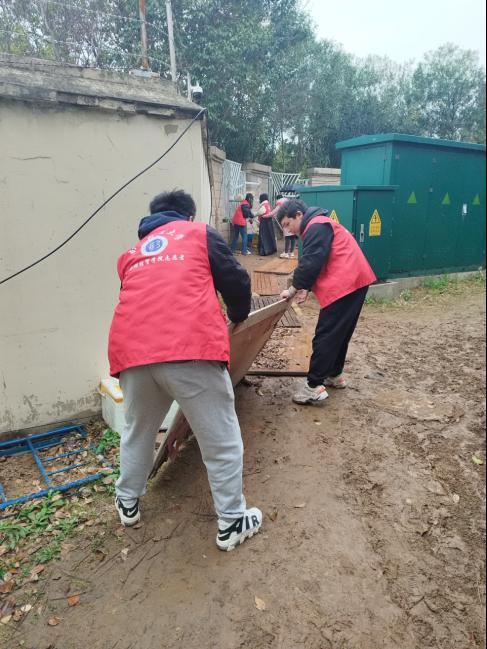 在清扫期间,志愿者们发现连续几天的阴雨使得通往外卖点的草地变得泥泞湿滑。为了方便同学们取外卖,从角落里搬来废弃的床板铺在泥路上,短短半个小时,一条干净平坦的小路便从大路延伸到外卖架旁,让前来取外卖的同学可以脚不沾泥,安全通行。