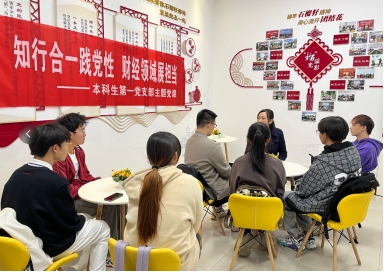 本科生第一党支部在“一站式”学生社区红石榴家园开展了题为“知行合一践党性,财经领域展担当”党课教育活动。此次党课由支部书记董敏授课。