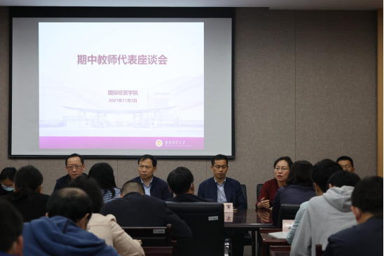 召开本学期期中教师代表座谈会,党委书记张阳军、院长宣烨等学院全体领导班子和各系教师代表参会,会议由杨智华副院长主持。