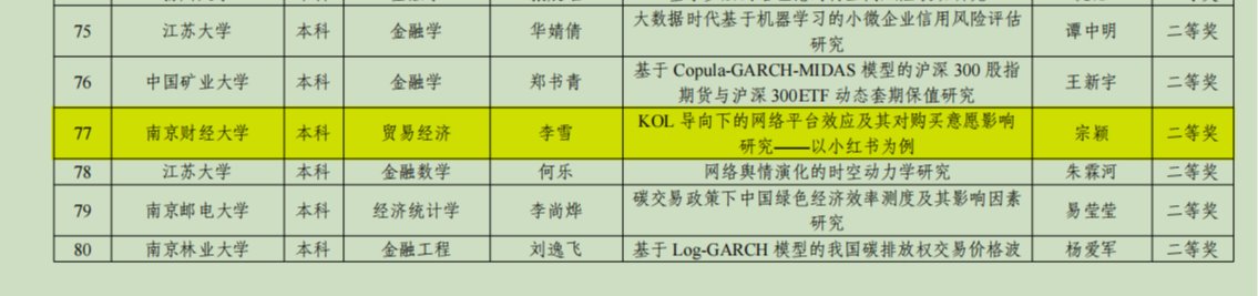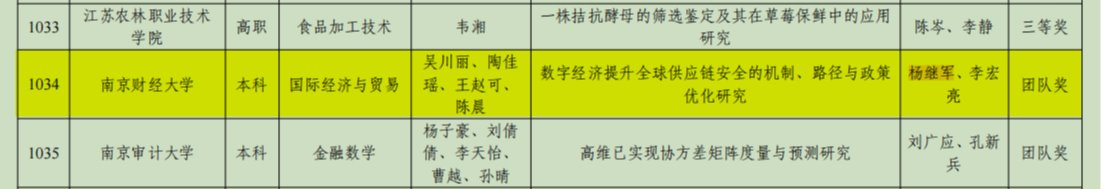 1篇毕业论文荣获江苏省普通高等学校本专科优秀毕业论文二等奖,1项团队论文荣获江苏省普通高等学校本专科优秀毕业论文团队奖。