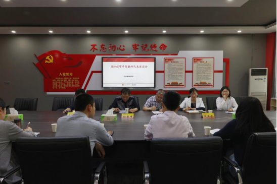 在德经楼206会议室举行了教师代表座谈会,党委书记周亚芳、学院督导和来自国际经济与贸易系、贸易经济系、电子商务系的系主任、教师代表参加会议,校督导袁国敏教授、杨国峰教授受邀参会。会议由副院长陈启斐主持。