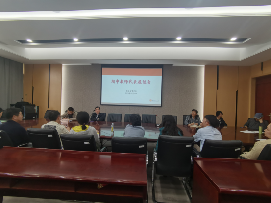 于2023年10月25日召开了期中教师代表座谈会。会议由陈启斐副院长主持,党委书记周亚芳、院长余泳泽、各系主任、学院本科教育教学督导以及教师代表参加了此次会议。会议在德经楼308会议室举行。