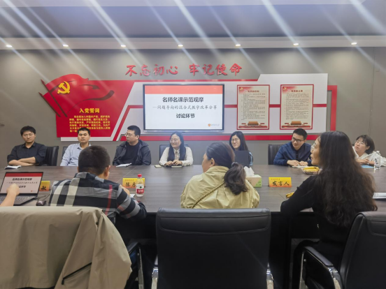 随后,陈小文老师进行了点评。她认为,徐老师提出的“六个阶段四次思考”教学方法是教学课堂和教学工具相结合的优秀示范,是教师深耕课程建设的生动体现,是教师潜心教书育人的真实写照。在讨论环节,与会老师围绕课程建设、教学设计等进行了了深入交流。陈启斐副院长表示,课堂是高校教书育人的主阵地,我们要积极主动向老教师讨经验,向优秀教师学方法,促进教师教育教学能力提升。