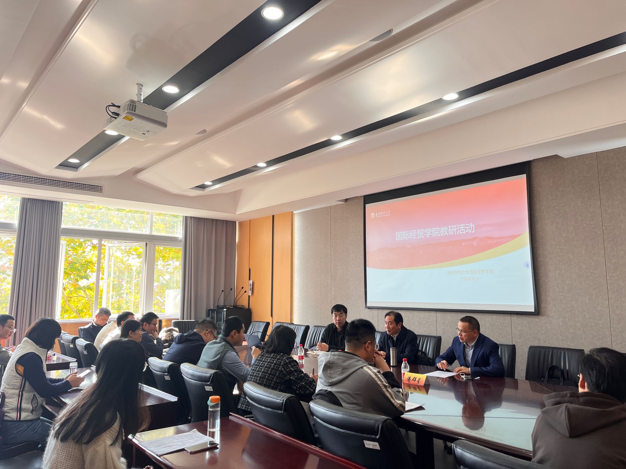 11月6日在德经楼308开展“以研促成长”主题的教研活动,国际经济与贸易系、贸易经济系和电子商务系的系主任、教师代表参加本次活动。校督导王宏勇、潘群星教授受邀参会,活动由副院长李冠艺主持。