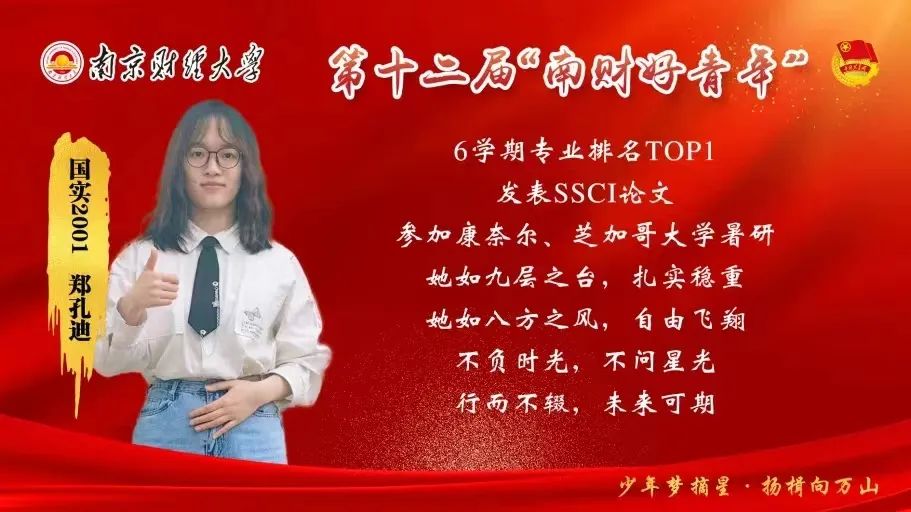 的三位优秀学子不仅充分展现了南财优秀学子的青春风貌,同时也为广大南财学子指引了奋进的方向。让我们在为三位优秀学子祝贺的同时,汲取榜样力量。