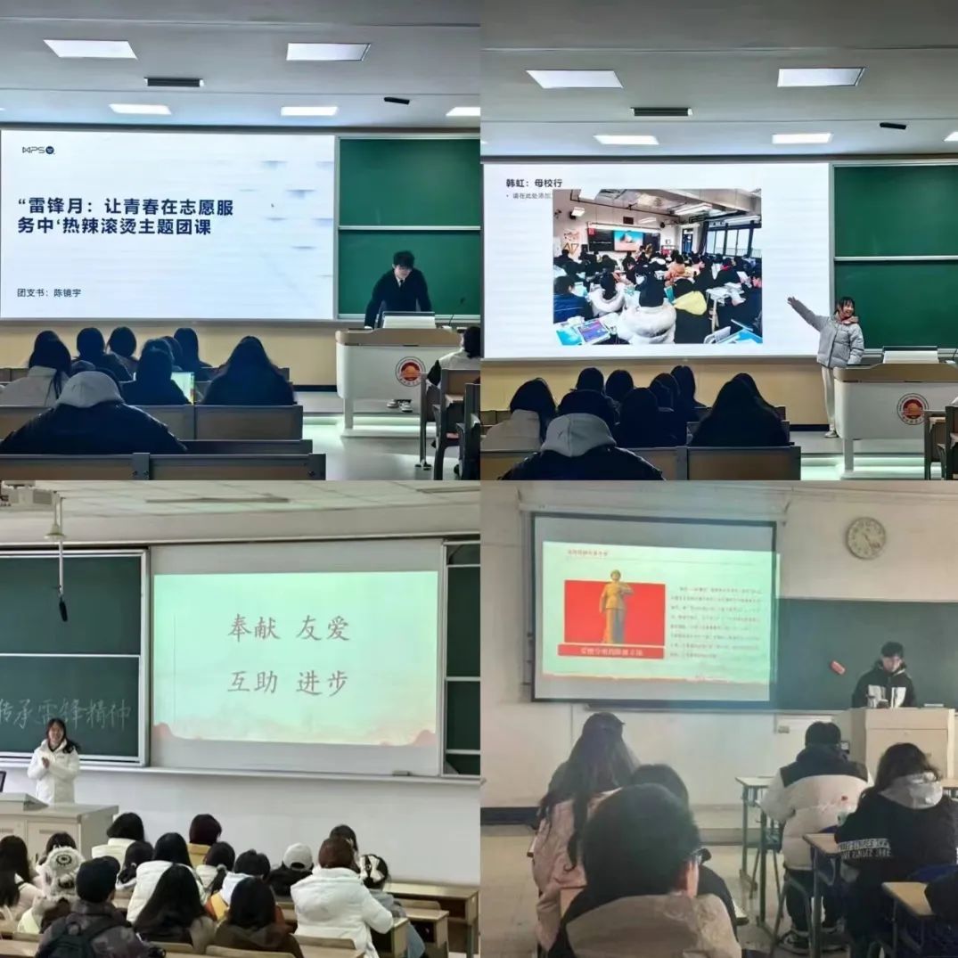 各团支部积极开展雷锋日主题团课活动,重温雷锋事迹,学习雷锋精神。支部同学们热烈讨论了新时代大学生何以践行雷锋精神,不少支部的寒假志愿“红马甲”们分享着自己的志愿服务经历,从腊八节社区施粥到春节街道安全排查,从“云支教”到陪伴失独老人,国产自拍
