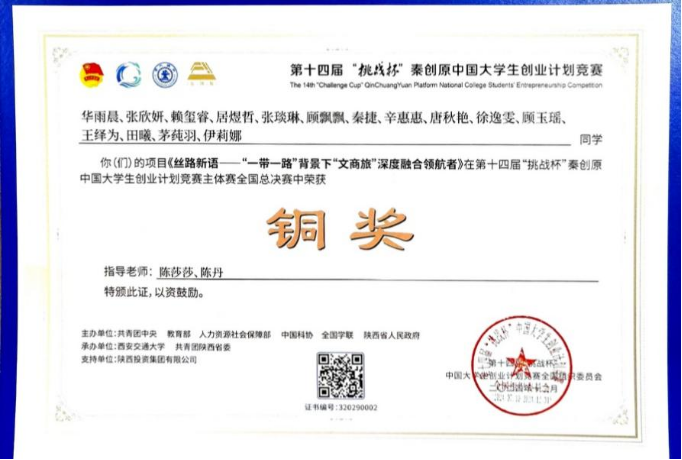 学子赖玺睿、邵馨悦、罗煜等同学申报的《一苇以航——画廊式电子商务平台助力虚拟画作交易发展》作为首发项目获第十五届全国大学生电子商务“创新、创意及创业”江苏省选拔赛一等奖,这也是国实2301班赖玺睿同学获得的第十二个省级以上奖项。